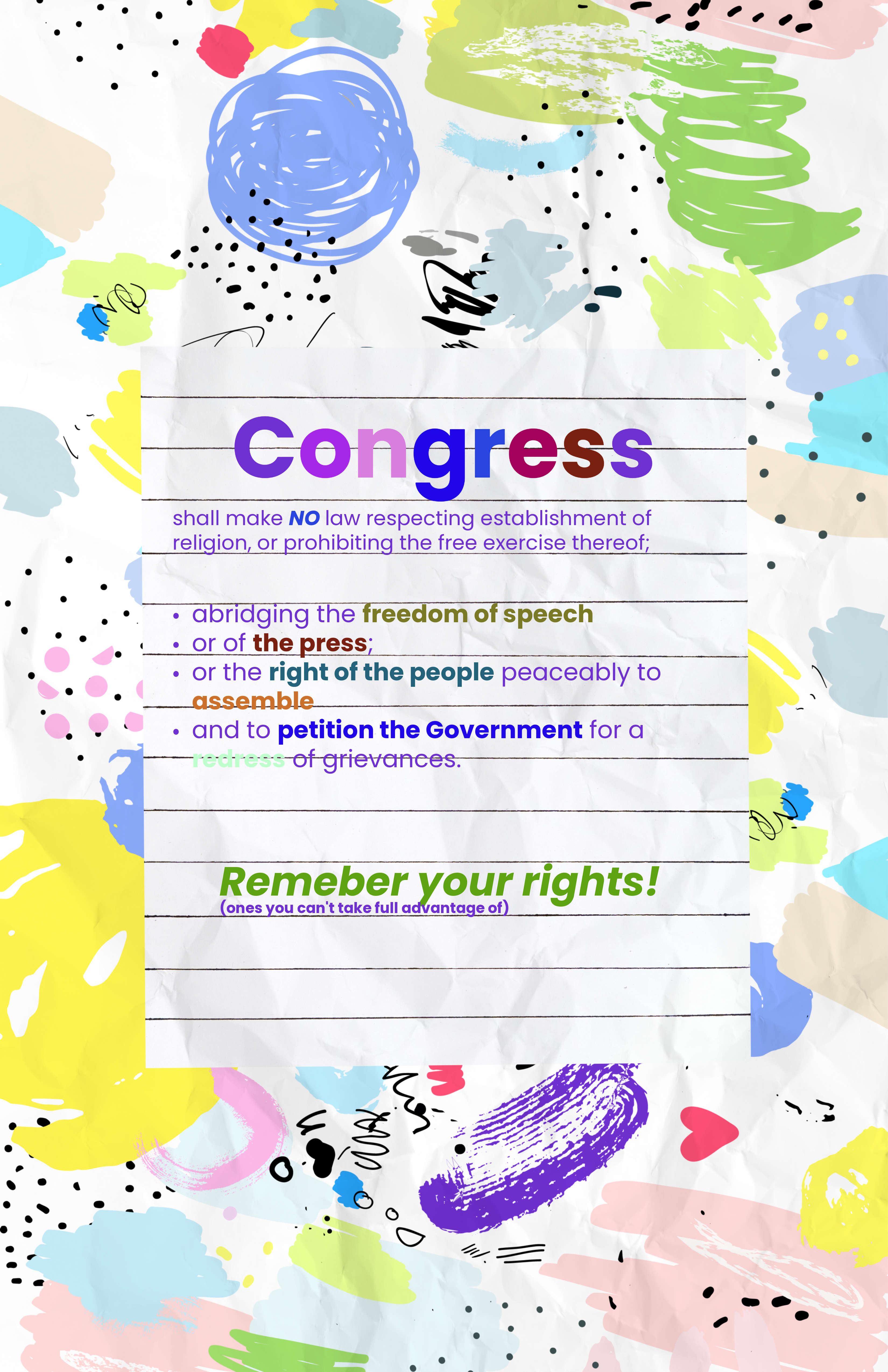 I was given the prompt to make a first amendment rights poster for kindergarteners so I went for a colorful crayon approach. It actually doesn't look half bad!